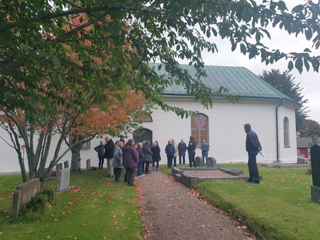 I torsdags, 22 september, samlades ett 20-tal medlemmar och andra intresserade vid Norra Vings kyrka. Vi leddes i guidningen på kyrkogården av Linda Florin som berättade om kyrkogården, gravskick och om kända personer i Axvall med närområde som är begravda på kyrkogården.
