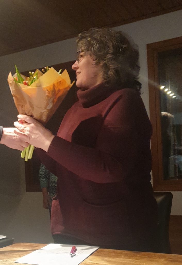 Efter årsmötesförhandlingarna avtackades Agneta och Maritha för sitt nedlagda arbete med varsin blomsterbukett.